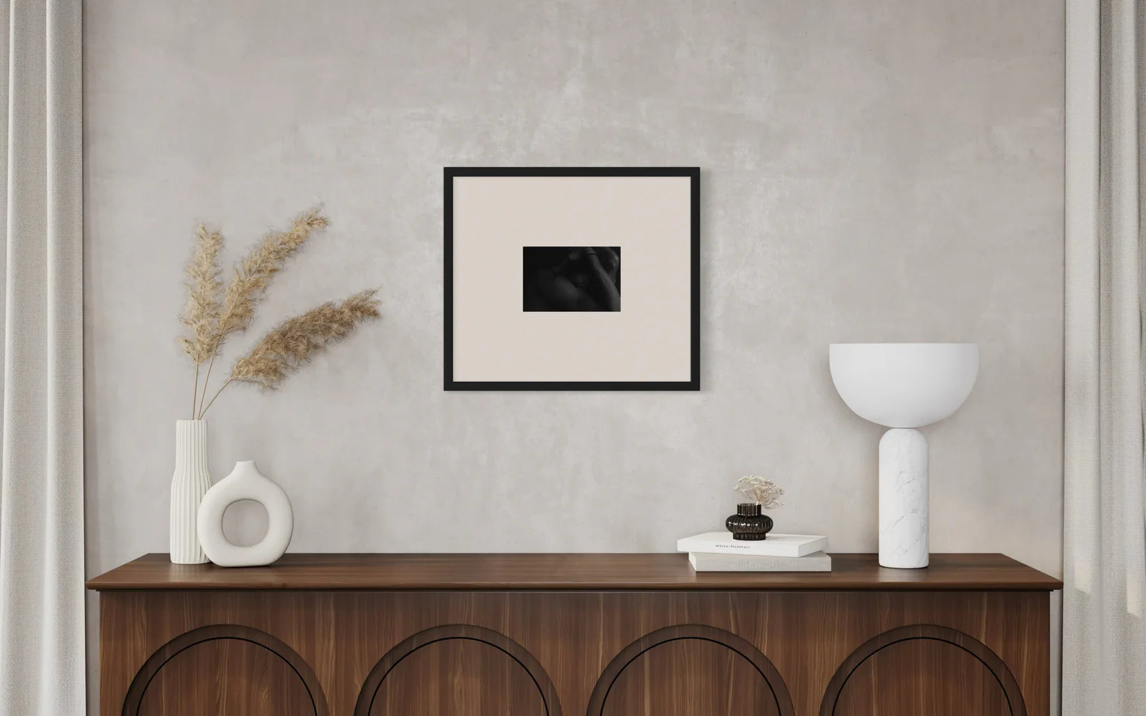In this black-and-white photograph by Duda Breda, a nude male figure hides behind his intertwined arms, revealing only a single, watchful eye. The stark contrast between light and shadow isolates this glance, drawing the viewer’s focus to the subject’s guarded expression. This intimate framing generates a sensation of both intrigue and tension, reflecting the conflicting pressures of presenting strength while safeguarding inner vulnerability.