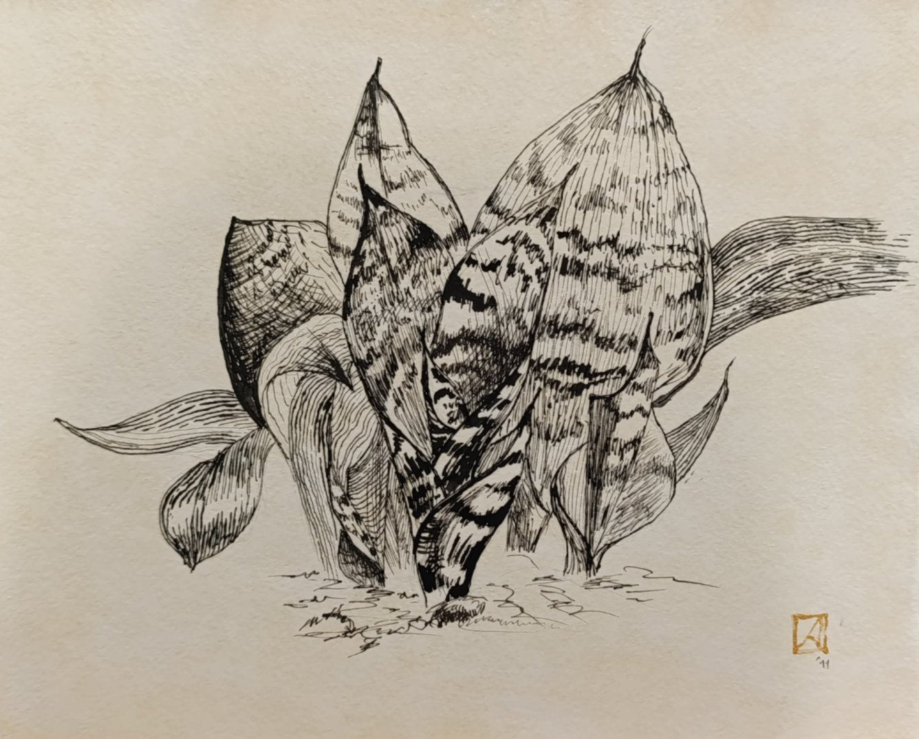 Botanical Study: Snake Plant in Ink