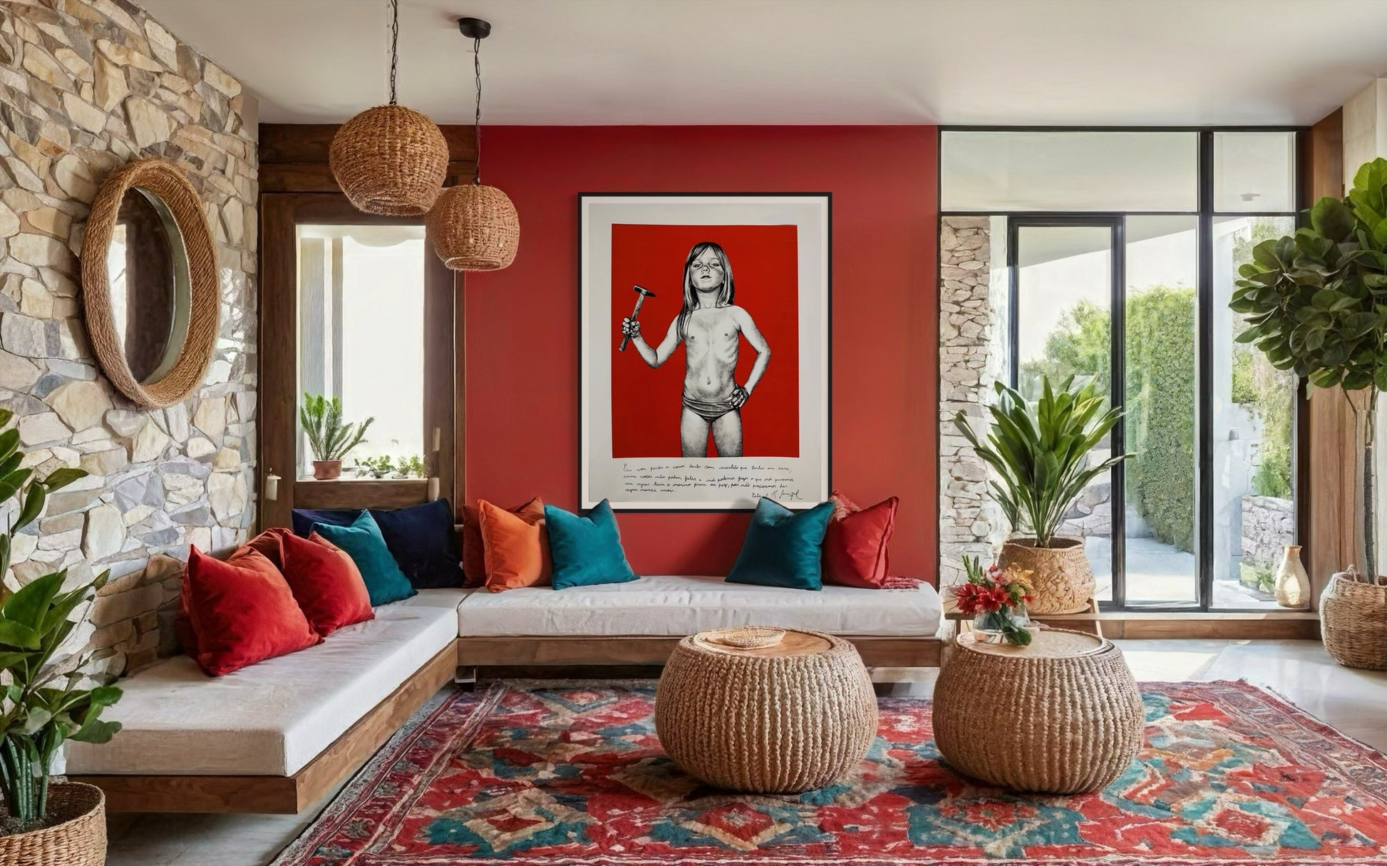 The overall style is thought-provoking, blending realism with graphic design or illustration elements, and it engages with contemporary themes and narratives.