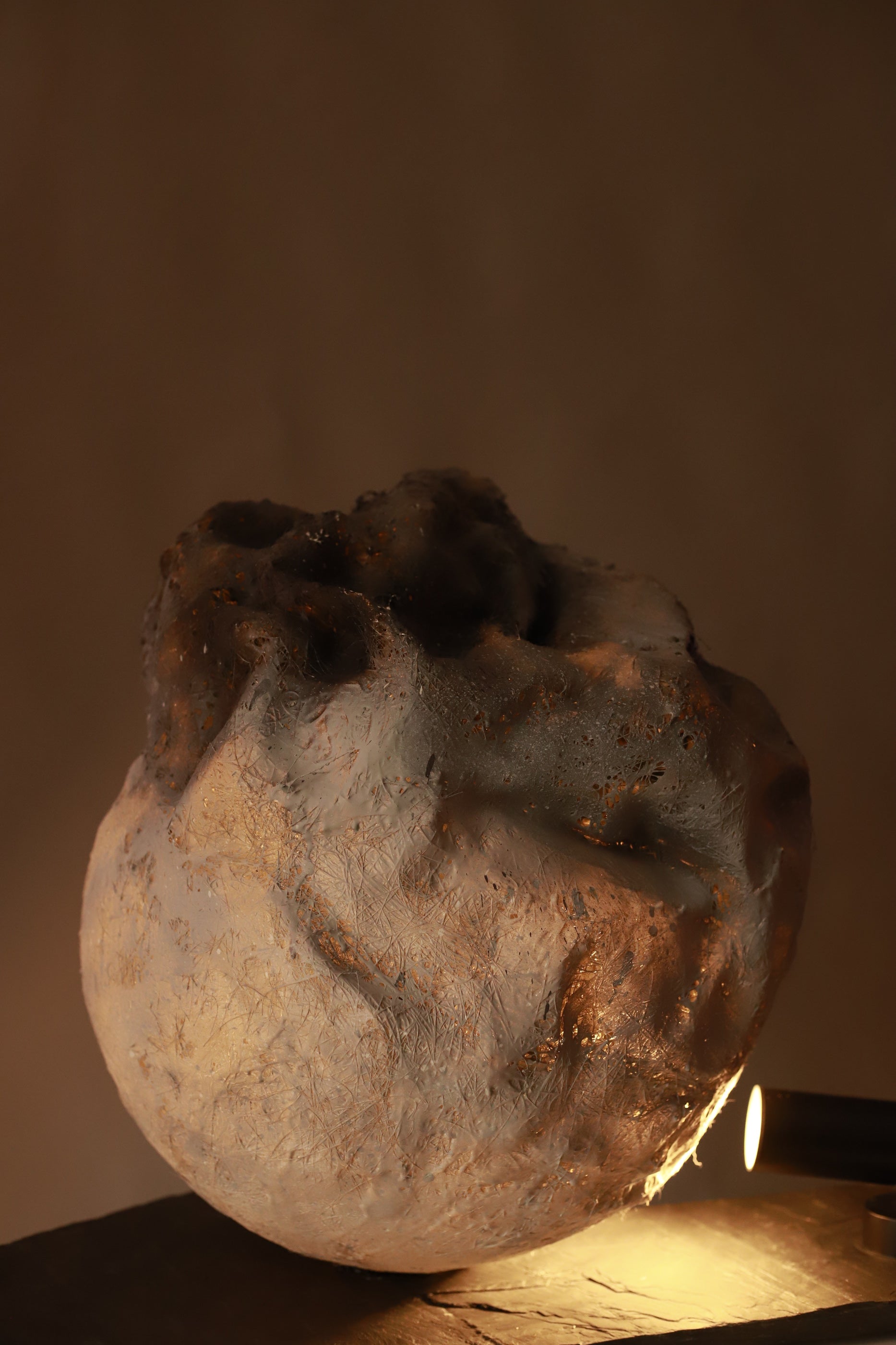 Evoking the weight of memory and erosion of voice, “Descendent Silence” is a sculptural meditation on decay, silence, and ancestral echo. The surface, marked and scorched, speaks of time, trauma, and transformation.