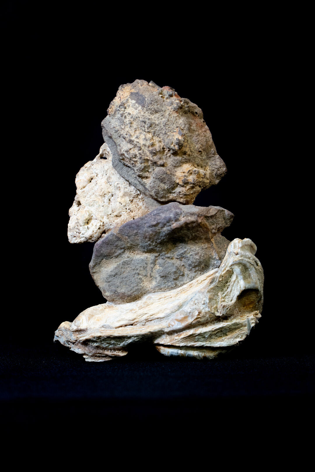 Subtle power and poetry of time sculpted by nature. Composed of layered stones and rugged textures, the piece resembles the abstract profile of a face, a silent witness to countless years of weathering and transformation. Each layer tells its own story, revealing the beauty hidden within rough edges and imperfect surfaces. This sculpture invites viewers to reflect on resilience, the passage of time, and the quiet strength of natural forms shaped by elemental forces.