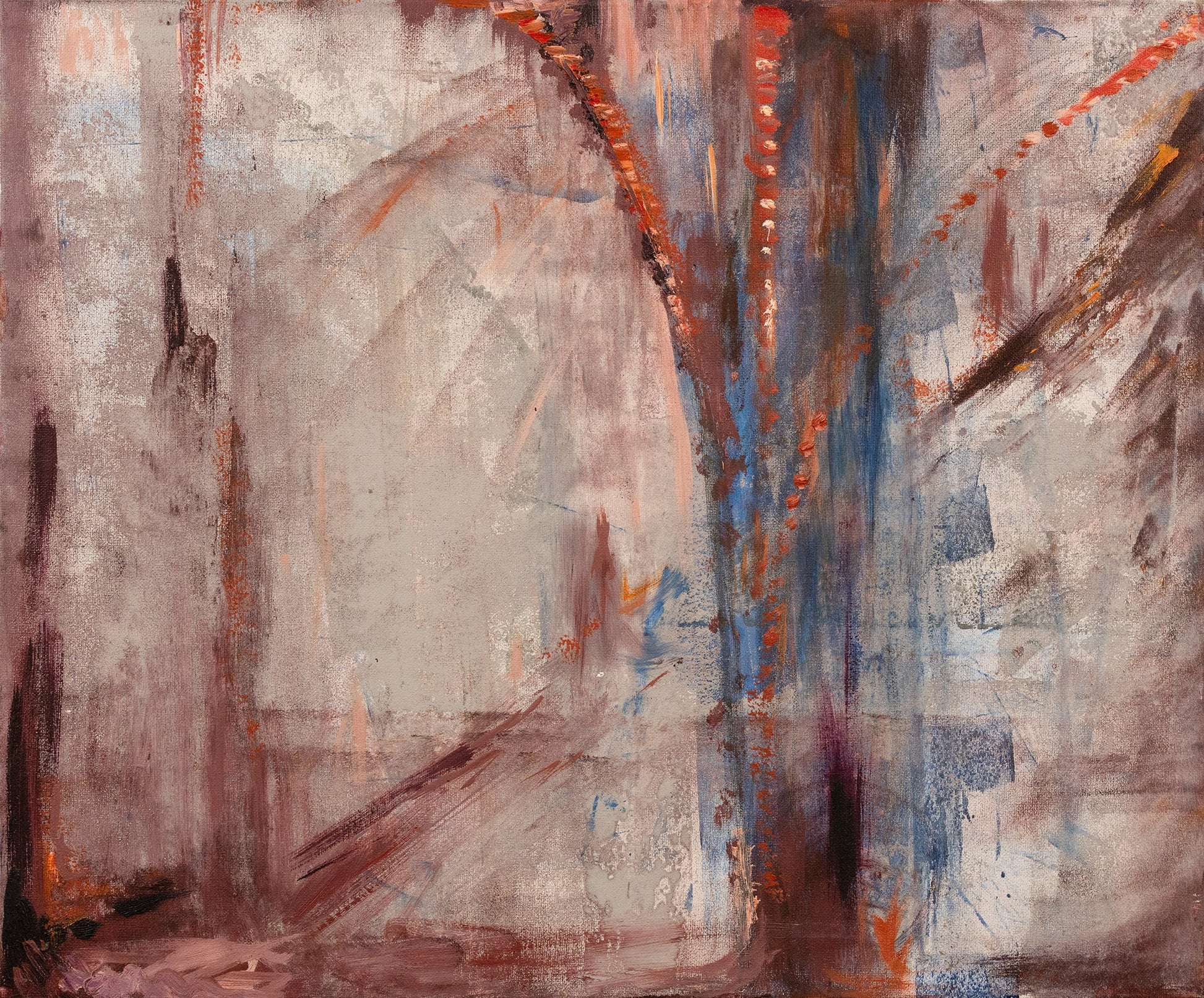 An abstract piece with dynamic brushstrokes in warm and cool hues, creating a sense of movement and depth. The interplay of reds, blues, and earth tones evokes a journey through an ethereal landscape.