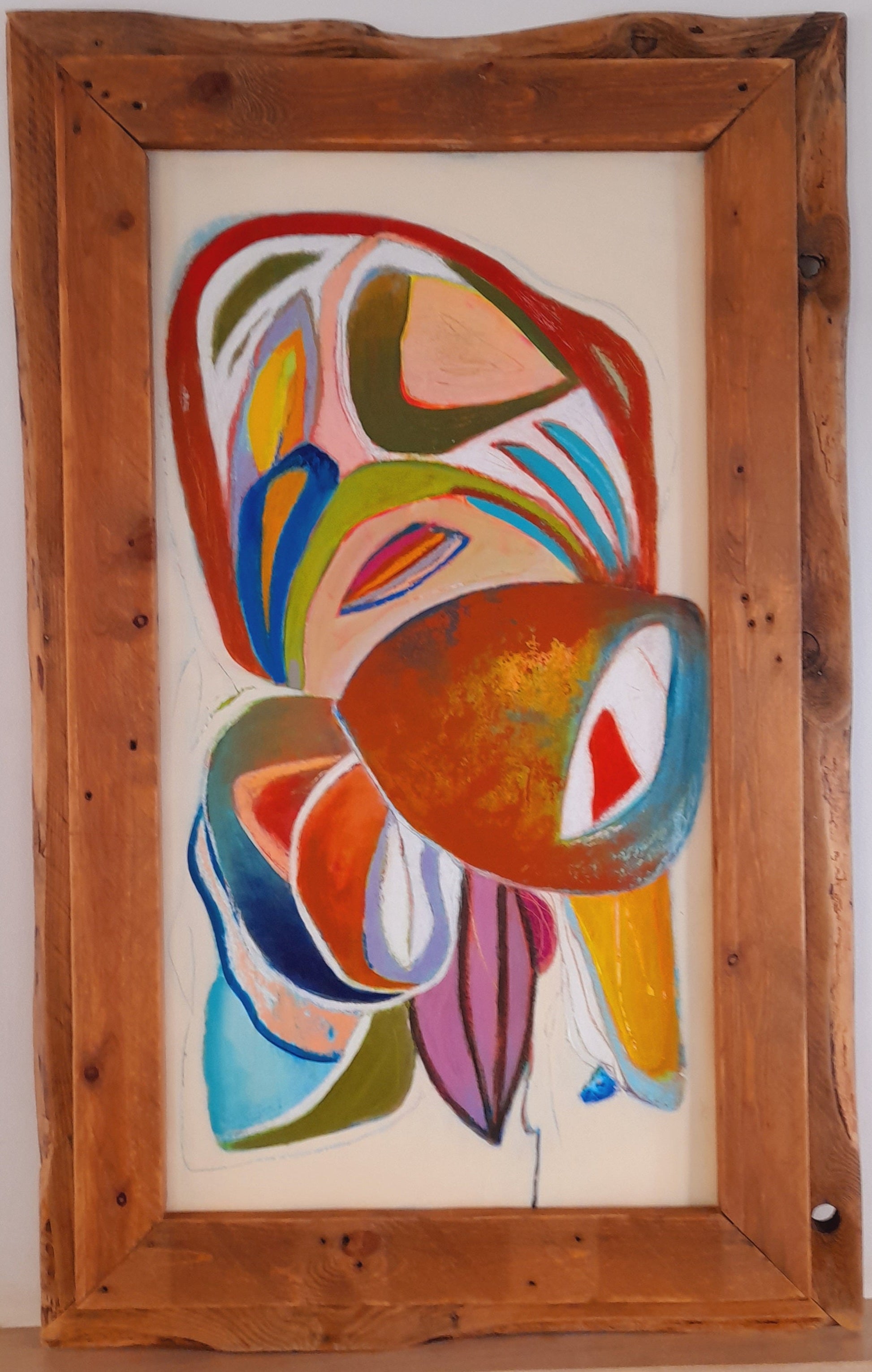 With a burst of colour and soft curves, Matilde celebrates intuition and identity. Framed in rustic wood, it’s both grounded and free — a joyful tribute to emotion in motion.