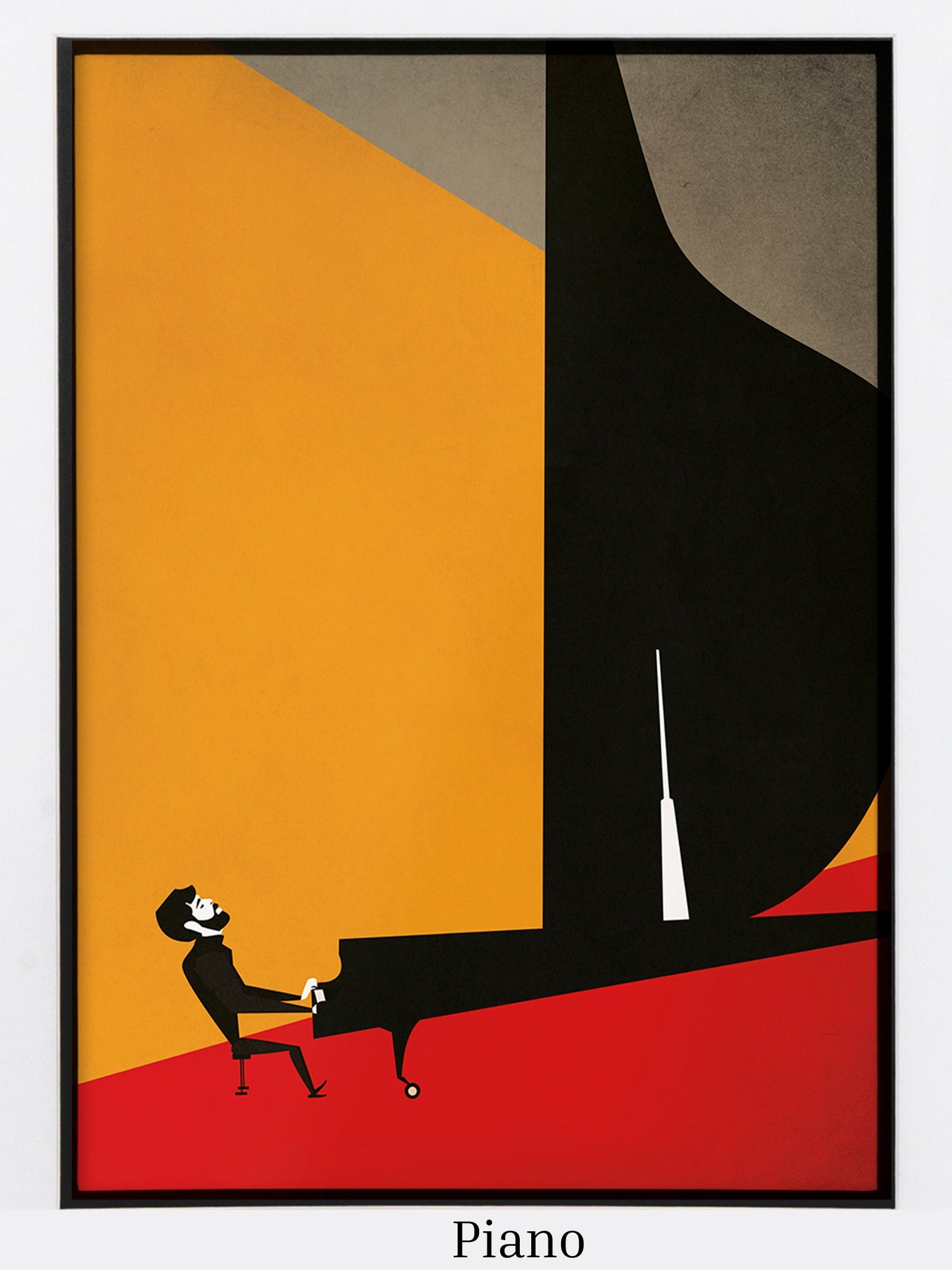 The piece conveys the grandeur, emotion, and power of piano music through its sleek, contemporary design.