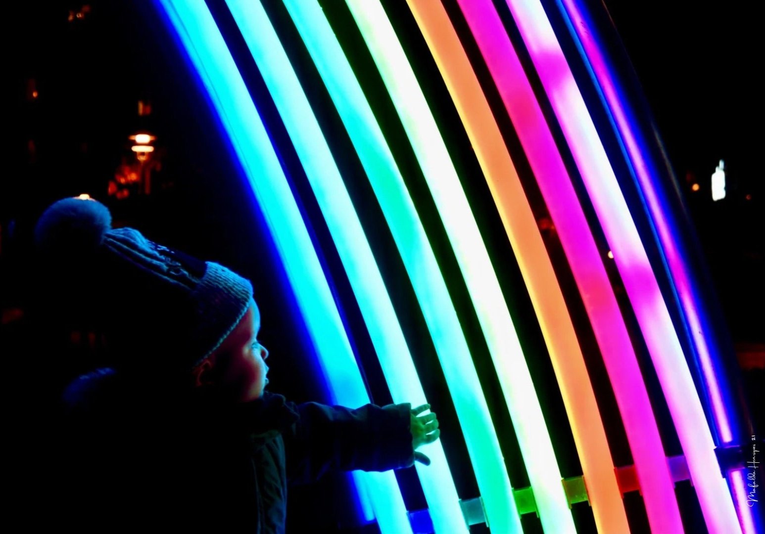 The composition conveys a sense of hope, joy, and wonder, while the rainbow symbolizes diversity, beauty, and the promise of a world full of possibilities. This extraordinary photograph, celebrating the innocence of childhood and the beauty of light art, won 1st prize in the @alingsaslightfestival photography competition.