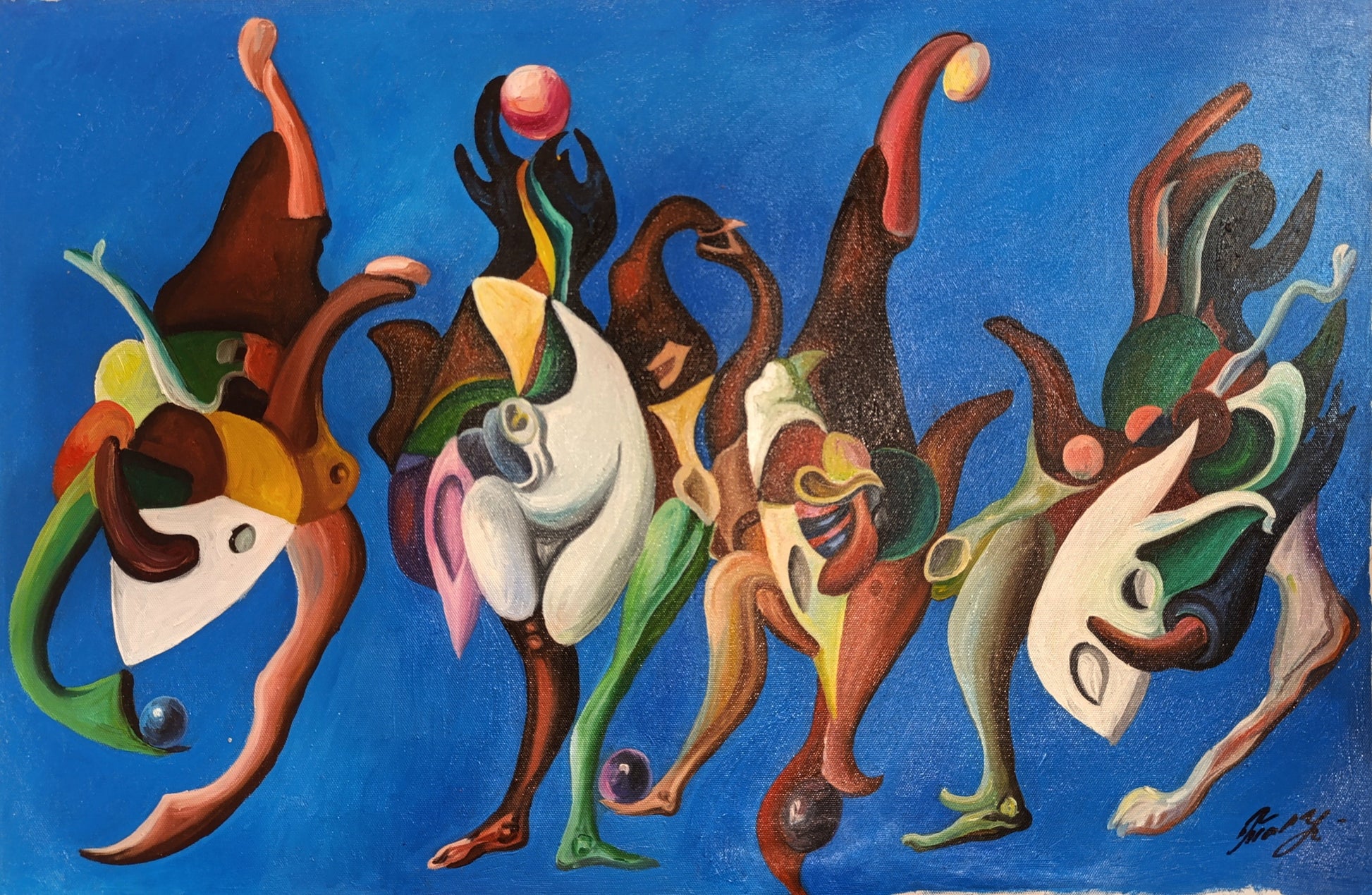 The fluid forms and playful interactions between colors create a visually stimulating experience, perfect for modern spaces that crave energy and artistic flair. This piece invites viewers to interpret its whimsical shapes and embrace the freedom of abstract expression.