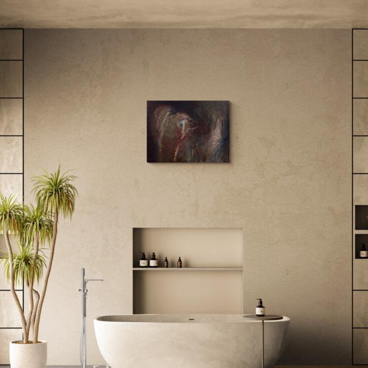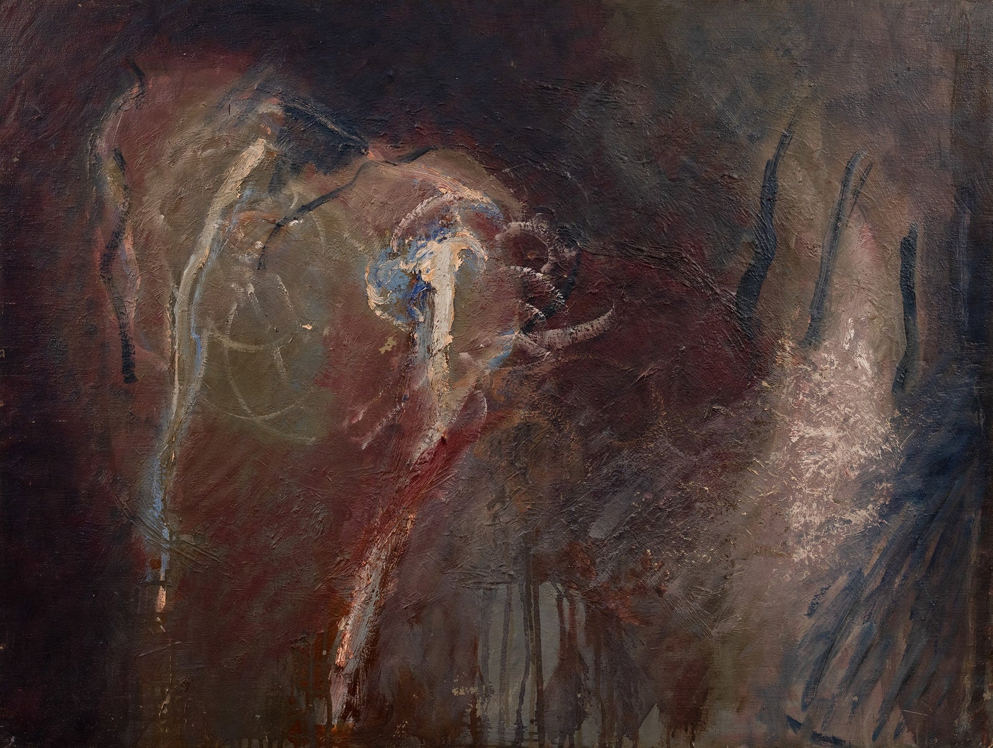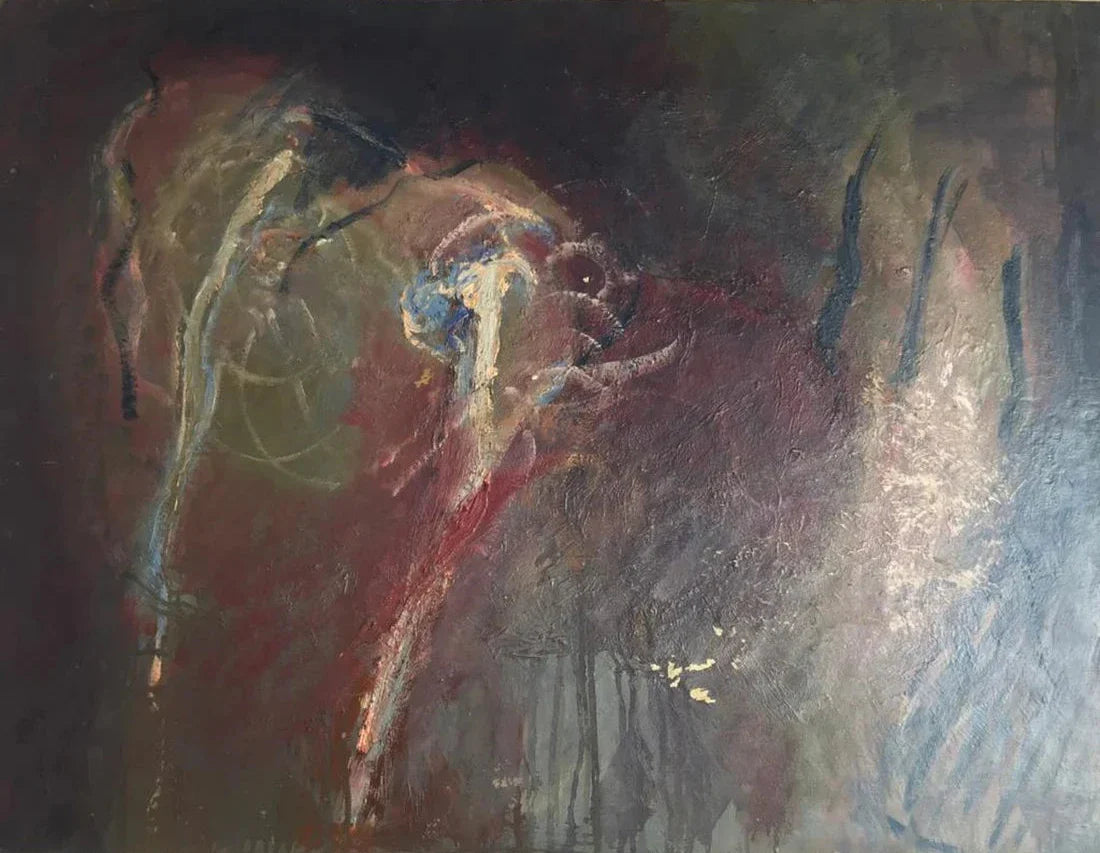This haunting and atmospheric painting captures the essence of memory and the passage of time. Dark, muted tones dominate the canvas, with faint, almost ghostly forms emerging from the shadows. The textured surface and abstract shapes suggest the remnants of forgotten stories and lingering emotions. The artist skillfully uses light and shadow to create a sense of depth and mystery, inviting the viewer to explore the hidden layers and interpret the elusive imagery. The overall mood is introspective and contemplative, evoking a profound sense of nostalgia and reflection.