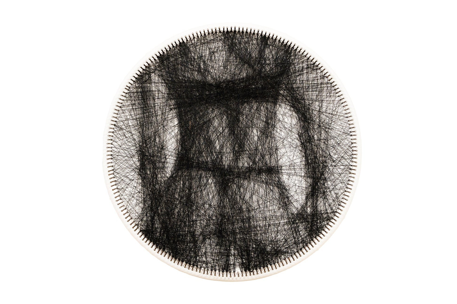 "Silhouette in Threads" is a captivating sculpture that delicately portrays the back view of a woman in lingerie using a complex network of black threads. The meticulous arrangement of the threads creates a subtle yet striking silhouette, emphasizing the elegance and grace of the female form. This piece invites viewers to appreciate the beauty of minimalism and the power of suggestion in art.