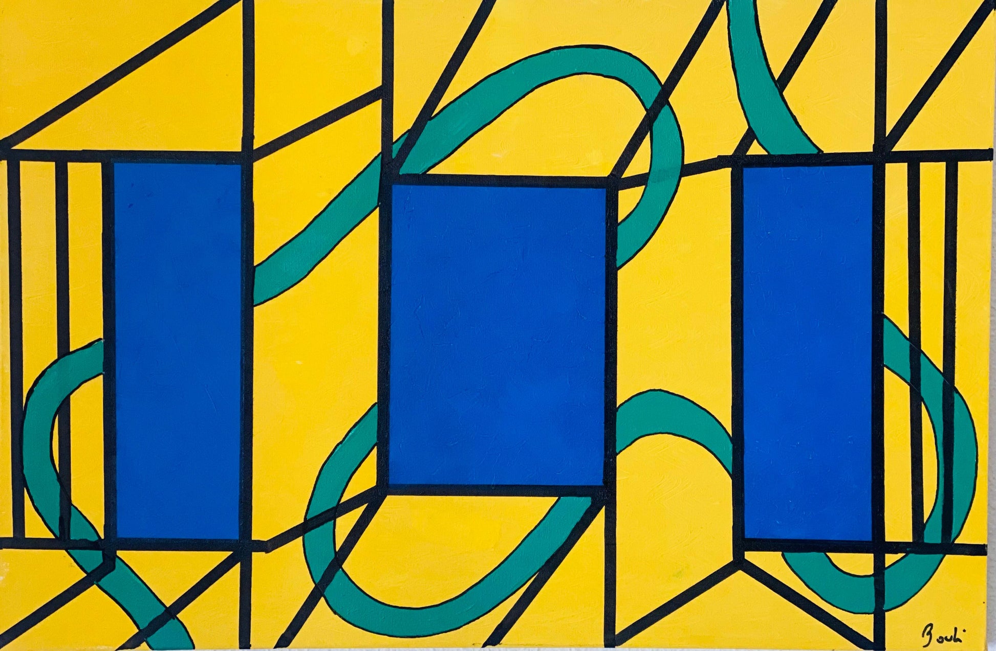 A vivid dance between rigidity and rhythm. “Tangled in Structure” challenges the boundaries of geometry with playful curves piercing through strict order.