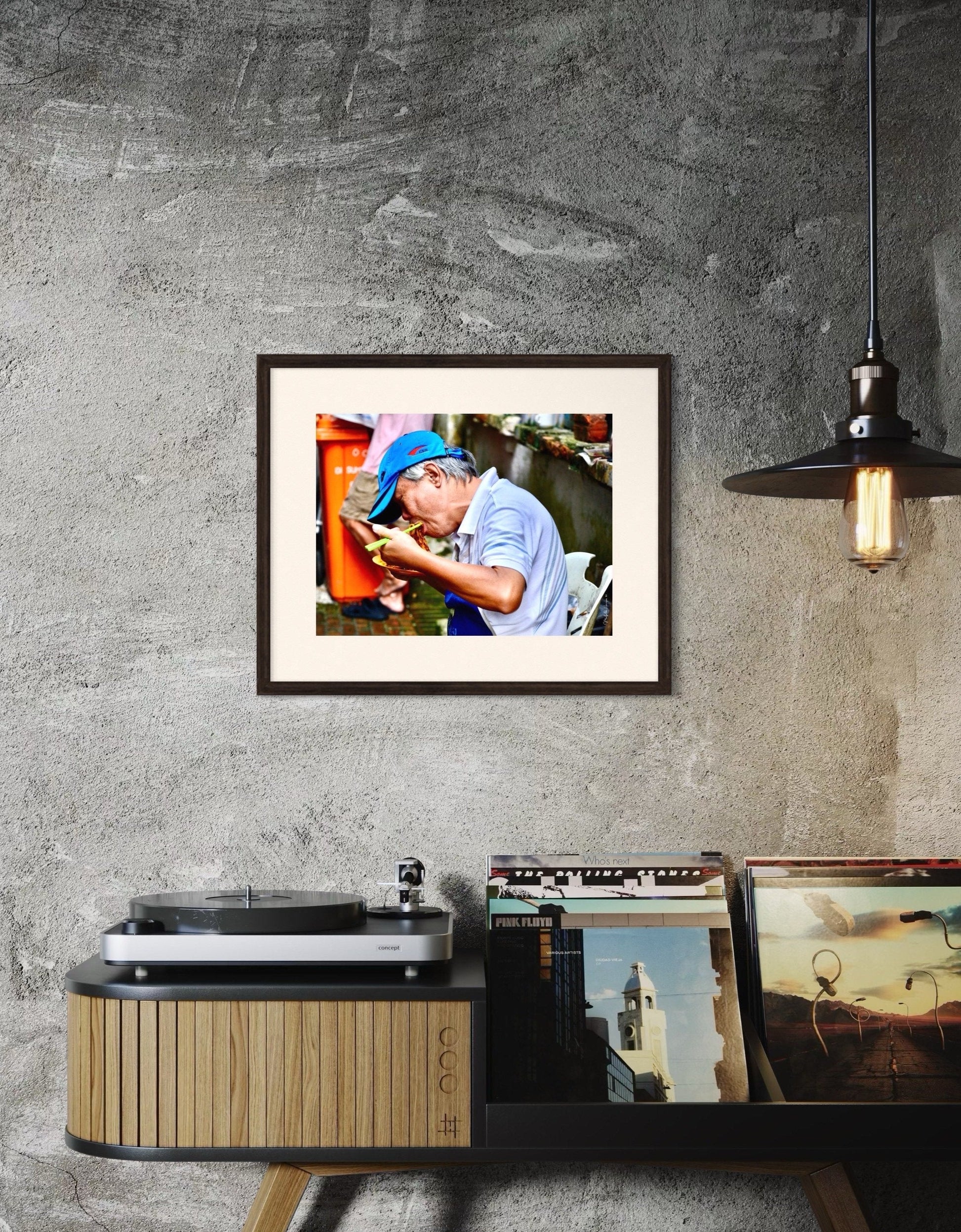 Watching him there, in the middle of the street, living his moment, stirs a reflection within us on the simplicity and universality of eating the need to pause, even in unusual and noisy places. The image challenges us to find beauty in stillness and to question the speed at which we move through life, reminding us that sometimes, we need to stop, simply be, and enjoy the moment we’re in.