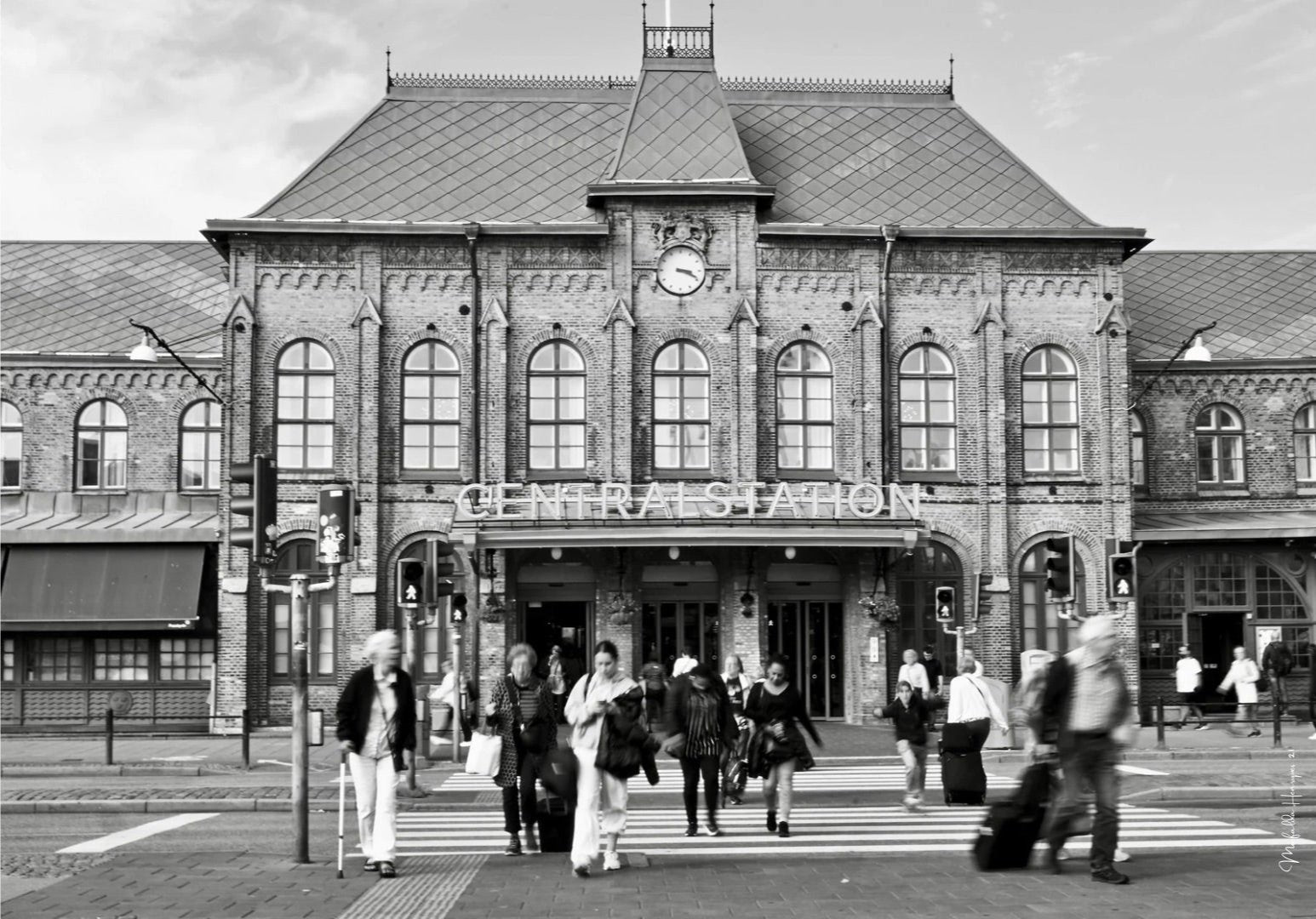 In this black-and-white capture, the vibrant scene of Gothenburg takes on a new dimension. On this summer afternoon, the central station stands tall in the background, silently witnessing the life bustling around it.