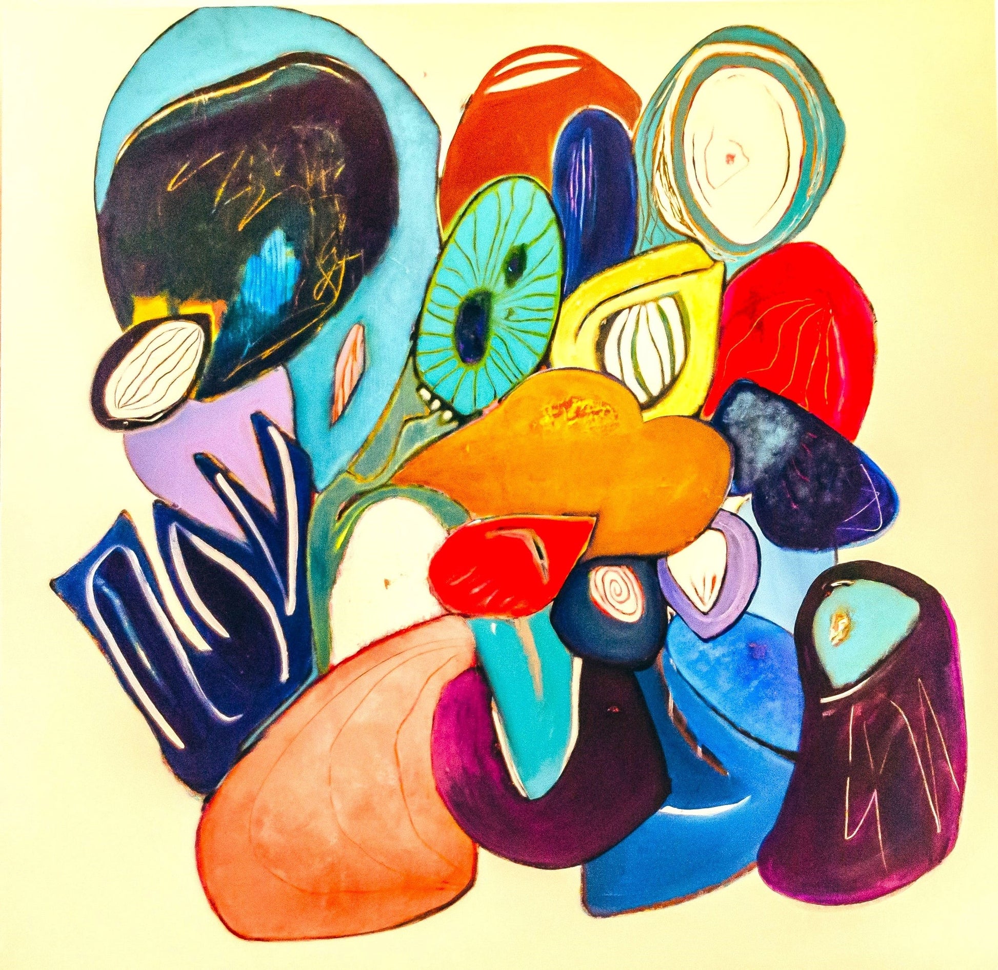 The interplay of vibrant tones and fluid outlines suggests both movement and rootedness, as if under the protective canopy of a fig tree where imagination blossoms.